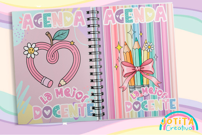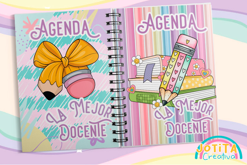 Formato para impresión, agenda docente anual sin fechar.incluye: 6 portadas (se incluyen los PNG usa..