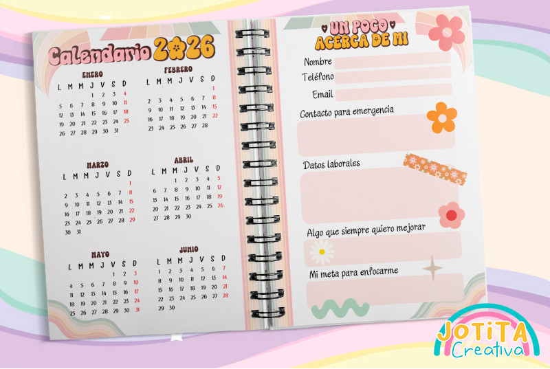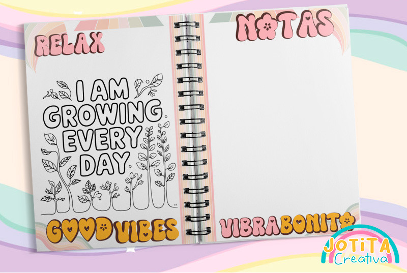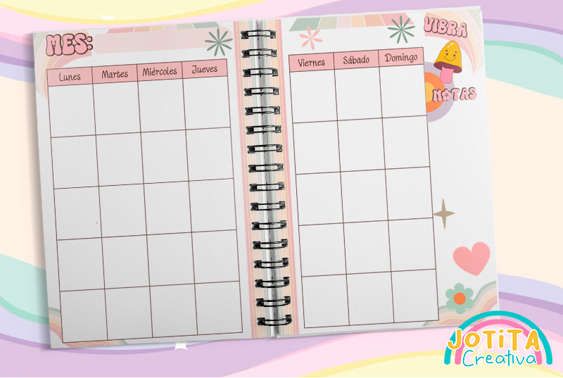 La Agenda Good Vibes Groovy es una propuesta llena de energía positiva, colores con onda retro y mensajes que inspiran a vivir el año con intención. Diseñada bajo el concepto de buenas vibras, estética groovy y mentalidad positiva, es ideal para ofrecer como agenda femenina con estilo único.