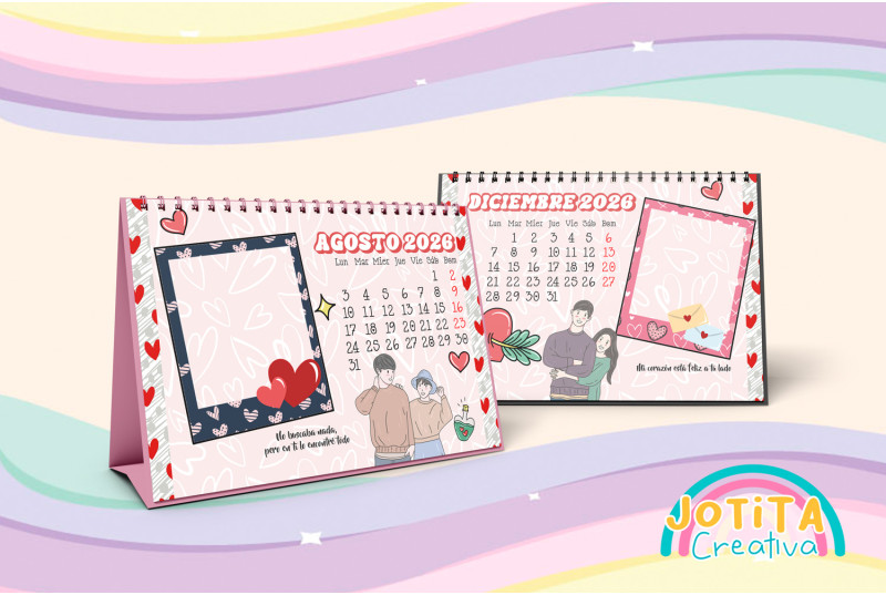 El fotocalendario está diseñado para armarse como calendario de escritorio, con una estructura práctica y elegante.