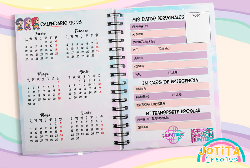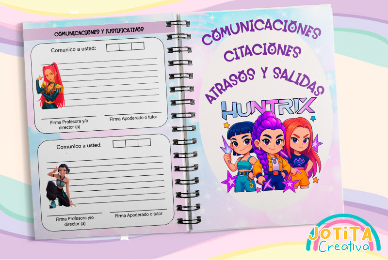 El Pack de Libretas de Comunicaciones Huntrix y SajaBoys es un kit digital imprimible pensado para emprendedores que buscan ofrecer libretas escolares temáticas, actuales y altamente atractivas para estudiantes fans del universo K-POP DemonHunters.