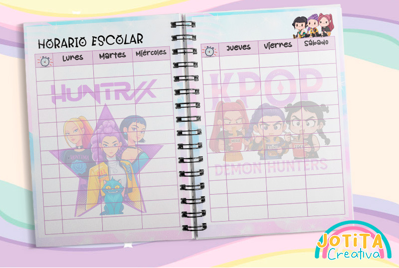 Kit Escolar KPOP Demon Hunter – Etiquetas Imprimibles + HorariosDescripción del productoEste s..